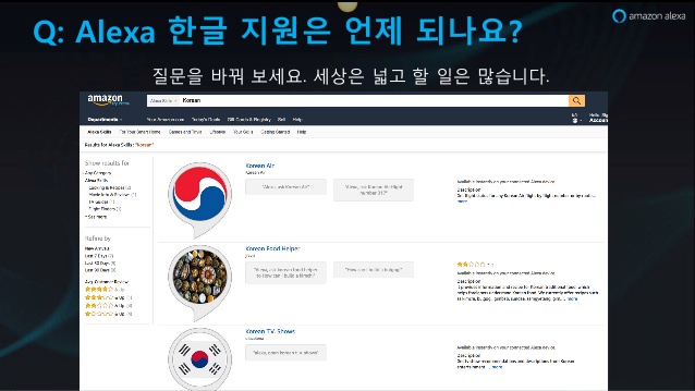 출처 : AWS Lambda를 활용한 Amazon Alexa Skills 개발 방법 (윤석찬) - Startup DeepDive Conference AWS의 윤석찬 님의 2017년 발표에서도 많은 분들이 알렉사의 한국어 지원에 대해 문의를 하셨는지,